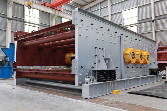 When the three-axis horizontal screen is working, the power is transmitted from the motor through a triangular belt to the driving shaft and gear vibrator of the exciter (with a speed ratio of 1), achieving the rotation of the three shafts at the same speed, generating excitation force. The exciter is connected to the screen box with high-strength bolts, resulting in elliptical motion.